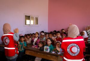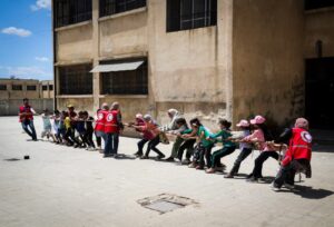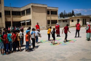 نظم متطوعو الهلال الأحمر العربي السوري فعاليات ترفيهية وحركية استفاد منها 60 طفلاً من قرية بسيرين بريف حماة الجنوبي.