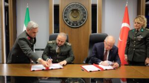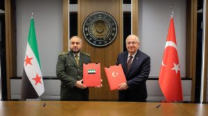 وزير الخارجية والمغتربين السيد أسعد حسن الشيباني برفقة وزير الدفاع اللواء المهندس مرهف أبو قصرة ورئيس جهاز الاستخبارات السيد حسين سلامة يلتقون بوزير الدفاع التركي السيد يشار غولر، حيث تم توقيع اتفاقية تدريب واستشارات عسكرية بين سوريا وتركيا، تشمل دورات تدريبية وبرامج ومساعدات فنية تهدف لتعزيز وتطوير دفاعات الجيش العربي السوري.