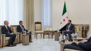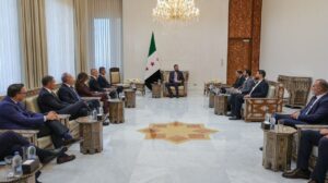 السيد الرئيس أحمد الشرع يستقبل في قصر الشعب بدمشق اليوم، وفداً من مجموعة CMACGM برئاسة رئيس مجلس إدارتها السيد رودولف جاك سعادة، حيث جرى التأكيد على البدء المبكر بالمرحلة الثانية من الاتفاقية الموقعة مع الهيئة العامة للمنافذ البرية والبحرية لبناء رصيف جديد في مرفأ اللاذقية، والاتفاق على اعتماد موانئ جافة ونقل البضائع عبر مطار دمشق الدولي.