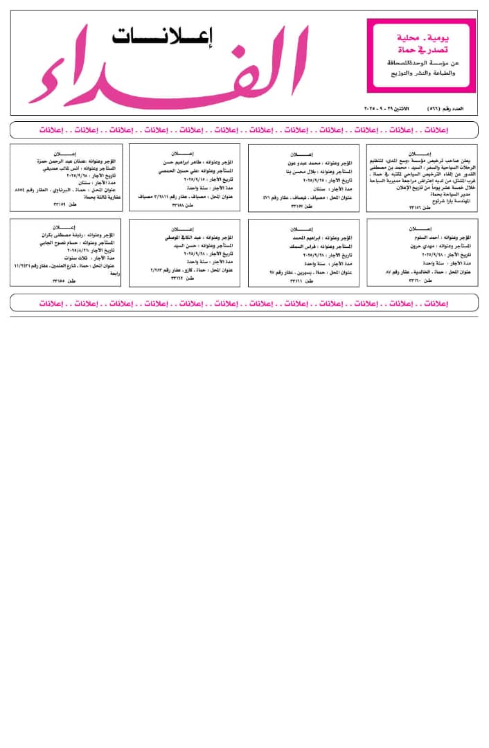 عنوان المحل : حماة ـ الخالدية ـ عقار رقم 87