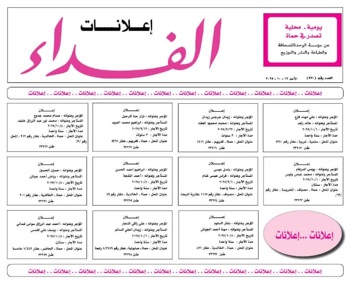 عنوان المحل : حماة ـ الخالدية ـ عقار رقم 49