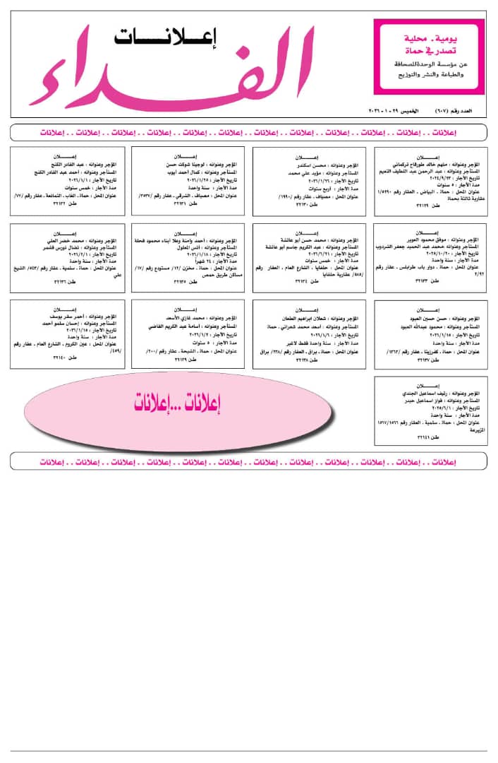 تاريخ الآجار : 26/1/2026
