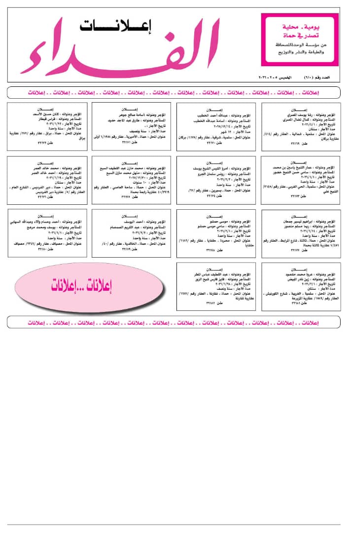 تاريخ الآجار : 30/12/2025