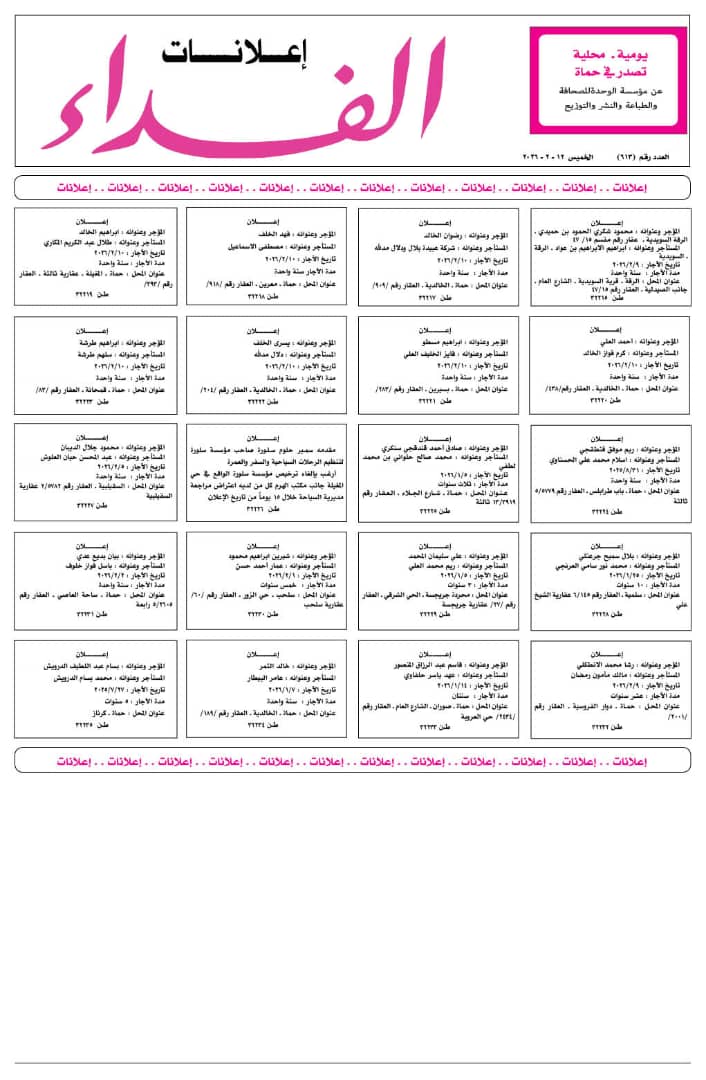 عنوان المحل : حماة ـ الخالدية ـ العقار رقم/438/