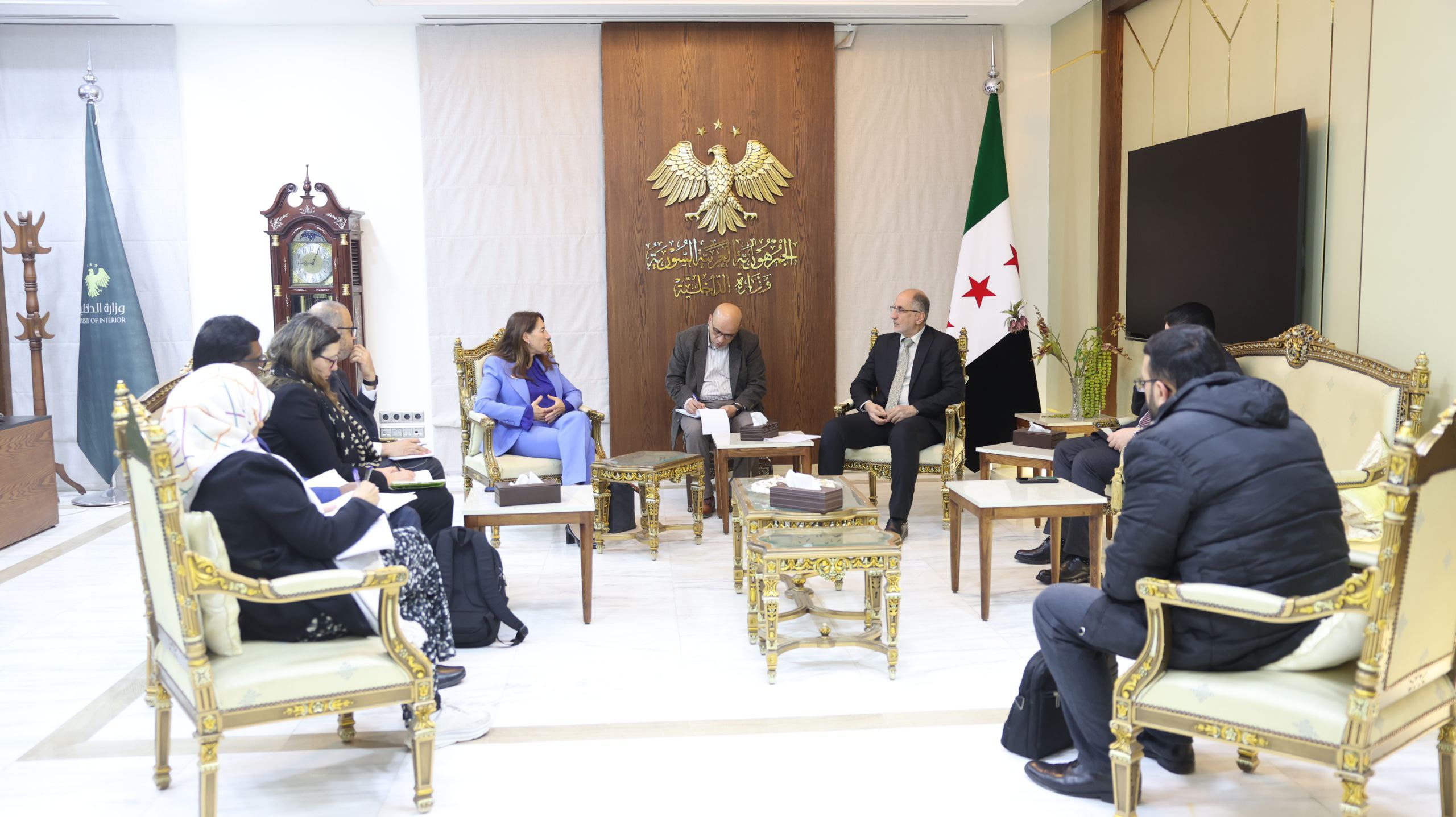 بحث مستشار وزير الداخلية للشؤون القانونية وحقوق الإنسان، العميد سامر الحسين، مع وفد مكتب الممثلة الخاصة للأمين العام لـ الأمم المتحدة المعني بالأطفال والنزاع المسلح، برئاسة السيدة فانيسا فريزر، آفاق التعاون الاستراتيجي بين وزارة الداخلية والمنظمات الأممية.