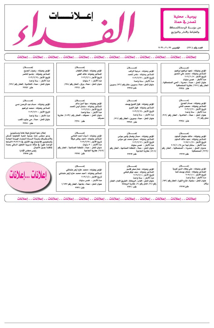 عنوان المحل : حماة ـ الخالدية ـ العقار رقم /912/ محل رقم /2/
