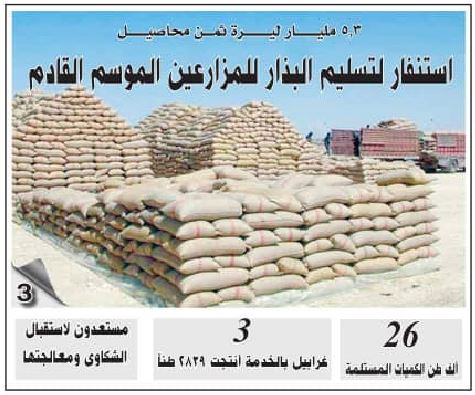 5,3 مليار ليرة ثمن محاصيل استنفار لتسليم البذار للمزارعين الموسم القادم ..26 ألف طن الكميات المستلمة..3 غرابيل بالخدمة أنتجت 2839 طناً ..مستعدون لاستقبال الشكاوى ومعالجتها