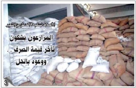 ومن ناحية أخرى وحول بعض القوائم التي لم تستكمل أوراقها يقول دعيمس : توجد بعض القوائم التي لم تستوف شروط الصرف قيد المعالجة وأيام قليلة سوف تحول قيم مبالغها، وهذه الأوراق قد تنقص / صورة هوية شخصية أو شهادة منشأ أو اختلاف عدد الأكياس…/ علما أنه لايوجد لدينا أية مشكلة تجاه عملية الشراء من قبلنا وكان الموسم الحالي خيراً ولم نوفر أية كمية موجودة لدى المزارع إلاَّ وقمنا بفحصها وشرائها وتخزينها في مستودعاتنا.