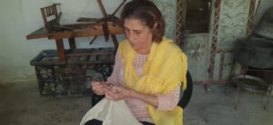 طريقة عملها بالحرير مؤكدة استمراريتها بحياكة قطع الحرير حتى لاتنسى تقنية غزل الحريرولتبقى يداها طرية خشية أن تنسى الحياكة مع مرور الزمن