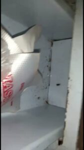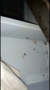 1 ضبط وجود صراصير حية في مكان الإنتاج وبين الحلويات الجاهزة المصنعة والمعدة للبيع في مشغل حلويات أ.بدوي.