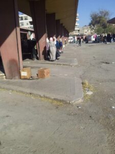 سائق ميكرباص يعمل على الخط قال من يوم أمس تم تزويد سيارتي بـ ١٧ لتراً من المازوت وبهذه الكمية لا أستطيع أداء عملي ، واليوم أنتظر تزويدها بكمية تساعدني للعمل على الخط.
