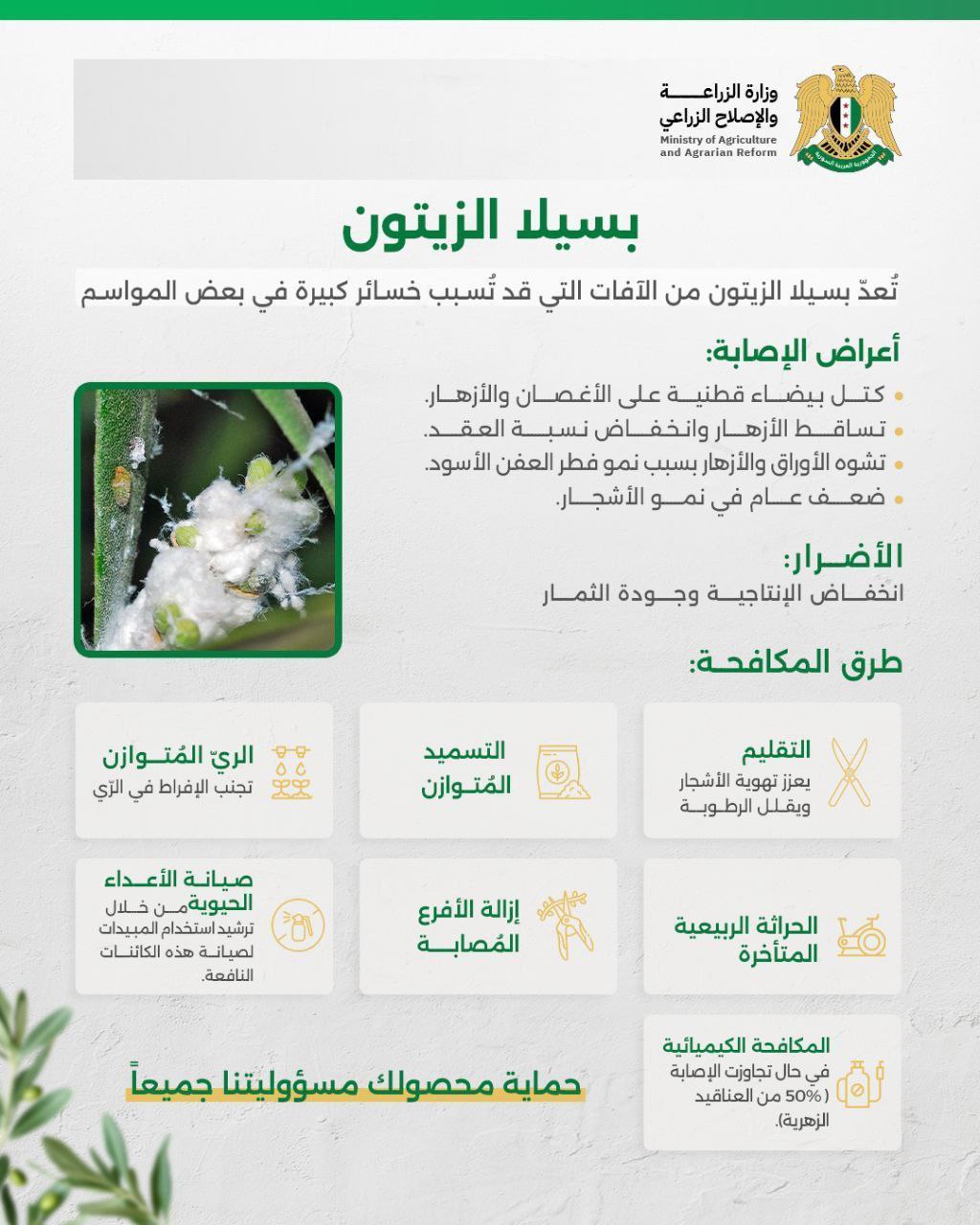 تُعدّ “بسيلا الزيتون” من الآفات التي قد تُسبب خسائر كبيرة في بعض المواسم في نيسان 22, 2025 شارك الفداء_ تُعدّ “بسيلا الزيتون” من الآفات التي قد تُسبب خسائر كبيرة في بعض المواسم. للتعرف على الأعراض وطرق المكافحة يرجى الاطلاع على المرفق. شارك FacebookWhatsAppFacebook MessengerTelegramTwitter