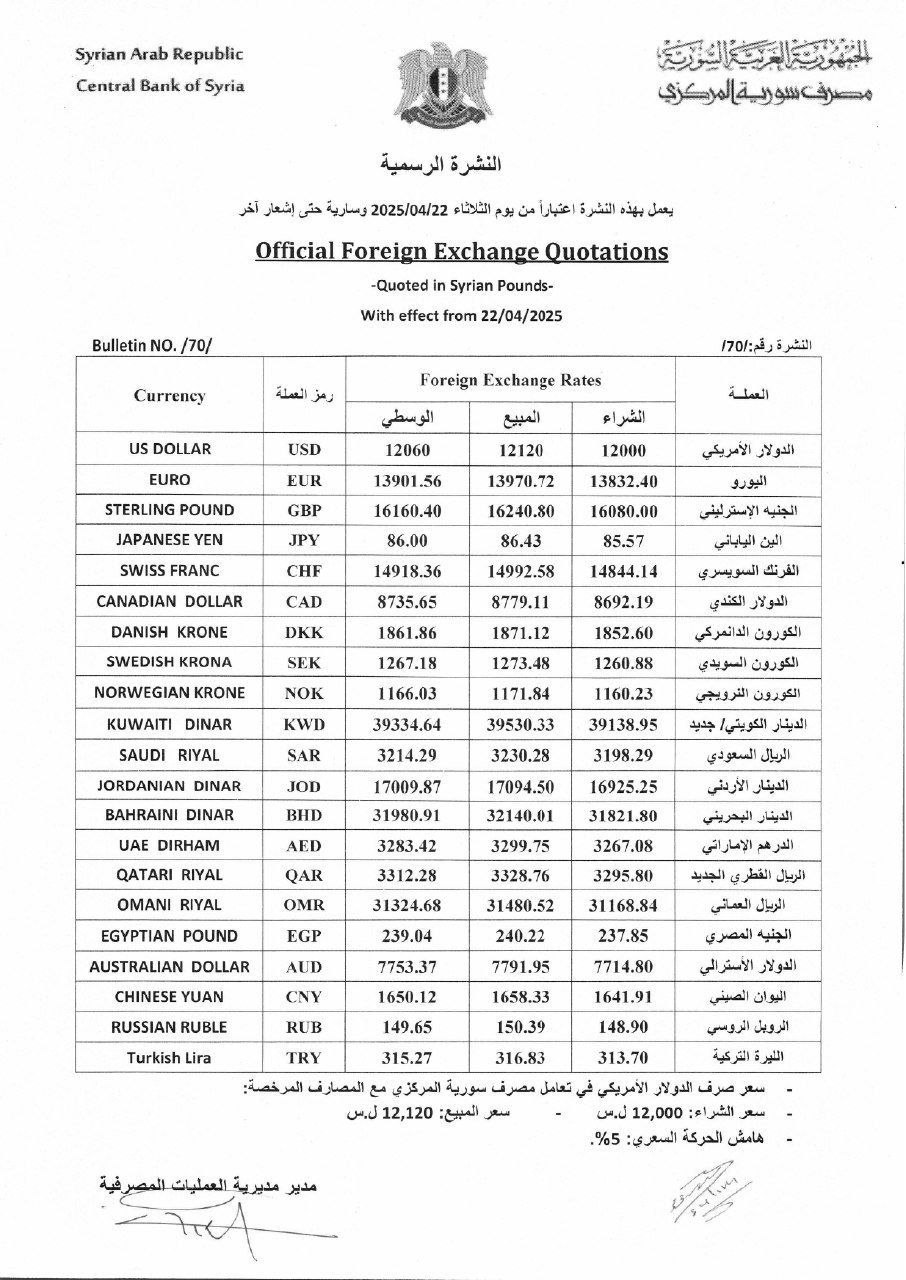 نشرة أسعار الصرف والمصارف وشركات الصرافة اليوم في نيسان 22, 2025 شارك الفداء_ نشرة أسعار الصرف والمصارف وشركات الصرافة اليوم. شارك FacebookWhatsAppFacebook MessengerTelegramTwitter