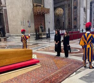 مشاركة وزيرة الشؤون الاجتماعية والعمل السيدة “هند قبوات” في مراسم تشييع قداسة البابا “فرنسيس” التي تُقام في دولة الفاتيكان