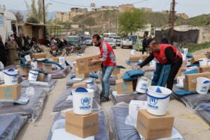 وزع فرع الهلال الأحمر العربي السوري في حماة، مواد إغاثية لـ 1457 أسرة عائدة إلى منطقة قلعة المضيق بريف حماة الشمالي الغربي، وذلك ضمن استجابته الطارئة لعودة الأهالي من الشمال السوري، ولتلبية بعض إحتياجاتهم الأساسية وتخفيف وطأة ظروفهم.