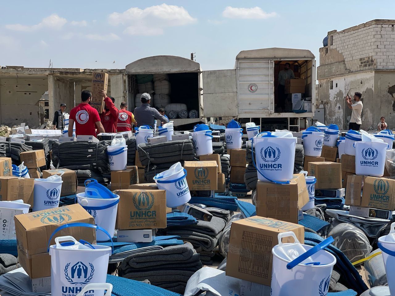 في استجابة طارئة لعودة الأهالي من الشمال السوري، وزع الهلال الأحمر العربي السوري مواد إغاثية لـ 71 أسرة عائدة إلى مدينة كفرزيتا بريف حماة الشمالي الغربي