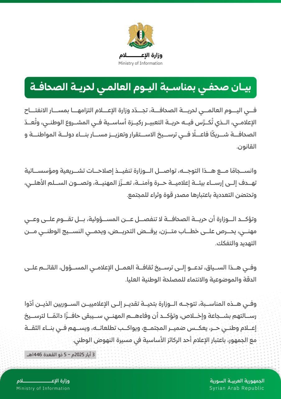 بيان صحفي بمناسبة اليوم العالمي لحرية الصحافة في أيار 3, 2025 شارك الفداء_ بيان صحفي بمناسبة اليوم العالمي لحرية الصحافة. شارك FacebookWhatsAppFacebook MessengerTelegramTwitter