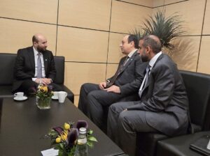 التقى وزير الطاقة المهندس “محمد البشير” مع نائب رئيس مجلس الوزراء القطري “خالد بن محمد العطية” تبادل الجانبان الأفكار حول أهمية إنعقاد القمة لتعزيز التواصل بين دول الإقليم ودورها في تذليل العقبات التي تواجه الدول المشاركة في قطاع الطاقة والموارد الطبيعية.
