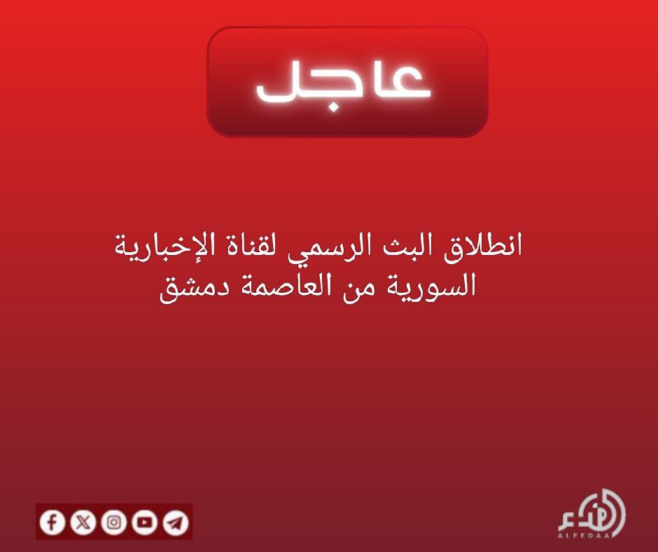 انطلاق البث الرسمي لقناة الإخبارية السورية من العاصمة دمشق في أيار 5, 2025 شارك الفداء_ انطلاق البث الرسمي لقناة الإخبارية السورية من العاصمة دمشق. شارك FacebookWhatsAppFacebook MessengerTelegramTwitter