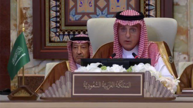 وزير الدولة للشؤون الخارجية السعودي عادل الجبير في كلمته خلال القمة العربية: المملكة تؤكد رفضها للاعتداءات الإسرائيلية على الأراضي السورية ونشدّد على أهمية دعم سوريا في مواجهة التحديات التي تواجهها