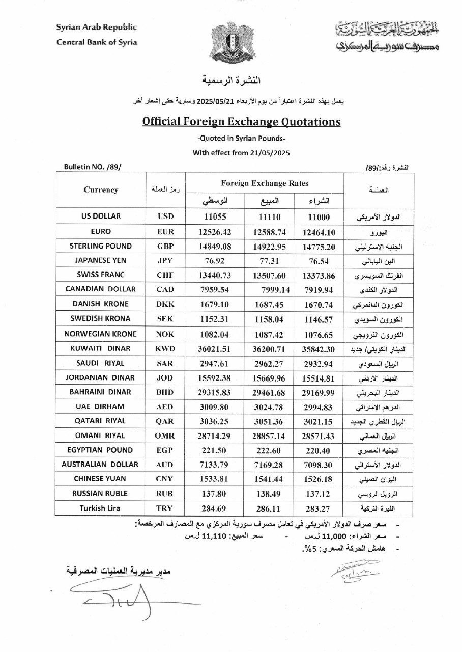 نشرة أسعار الصرف والمصارف وشركات الصرافة اليوم آخر تحديث أيار 21, 2025 شارك الفداء_ نشرة أسعار الصرف والمصارف وشركات الصرافة اليوم شارك FacebookWhatsAppFacebook MessengerTelegramTwitter
