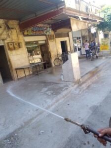 نقوم بحملة رش المبيدات ضمن أحياء مدينة حماة ونسعى لتغطية جميع أنحائها بالتسلسل ، علماً أنه يوجد أحياء موبوءة بالحشرات واللاشمانيا مثل: حي الصواعق و ضفاف العاصي، حي الضاهرية، حي كازو، المزارب. حيث تكثر فيها تربية المواشي والأسماك ، ونقوم بتغطيتها كاملة بمادة الضباب والرذاذ.