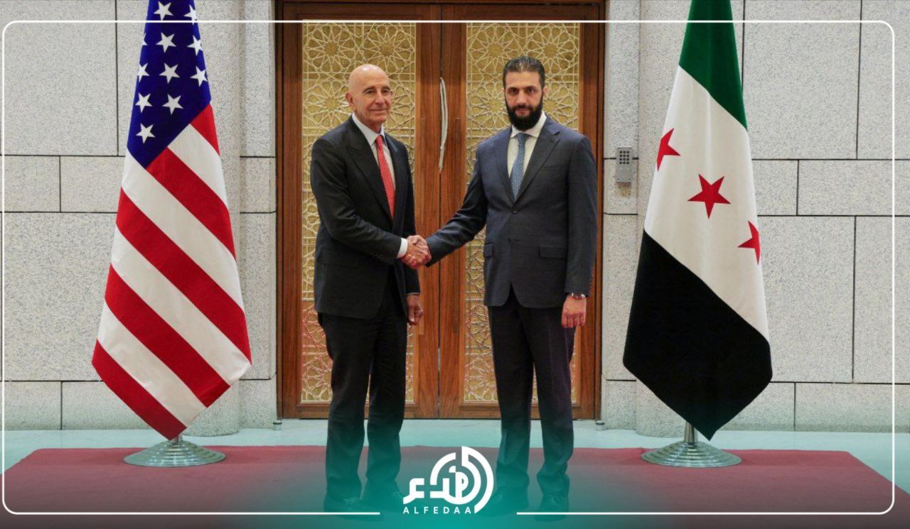 رئيس الجمهورية العربية السورية السيد أحمد الشرع يستقبل المبعوث الأمريكي الخاص إلى سوريا السيد توماس باراك في قصر الشعب بالعاصمة دمشق