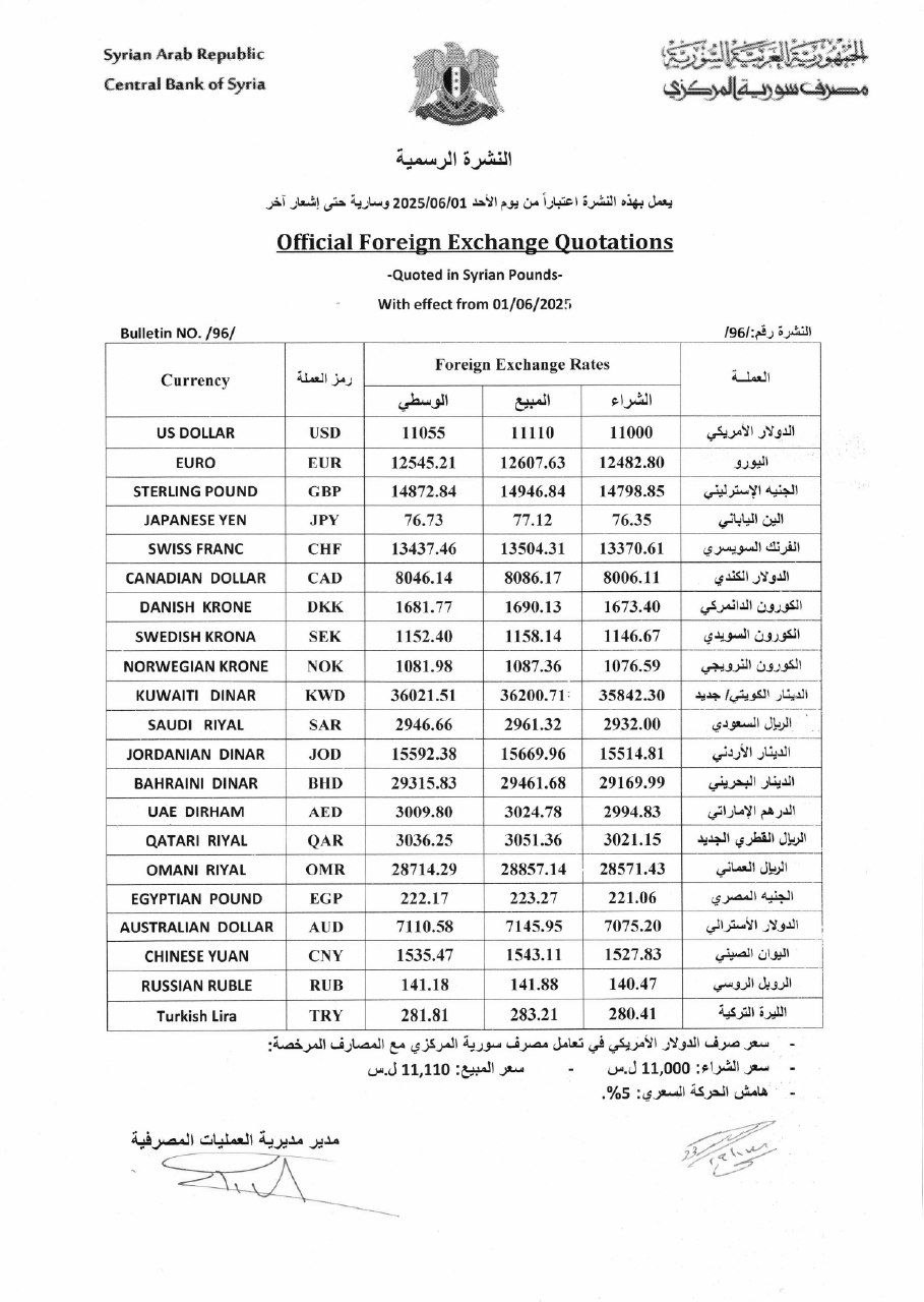 نشرة أسعار الصرف والمصارف وشركات الصرافة اليوم في حزيران 1, 2025 شارك الفداء_ نشرة أسعار الصرف والمصارف وشركات الصرافة اليوم. شارك FacebookWhatsAppFacebook MessengerTelegramTwitter