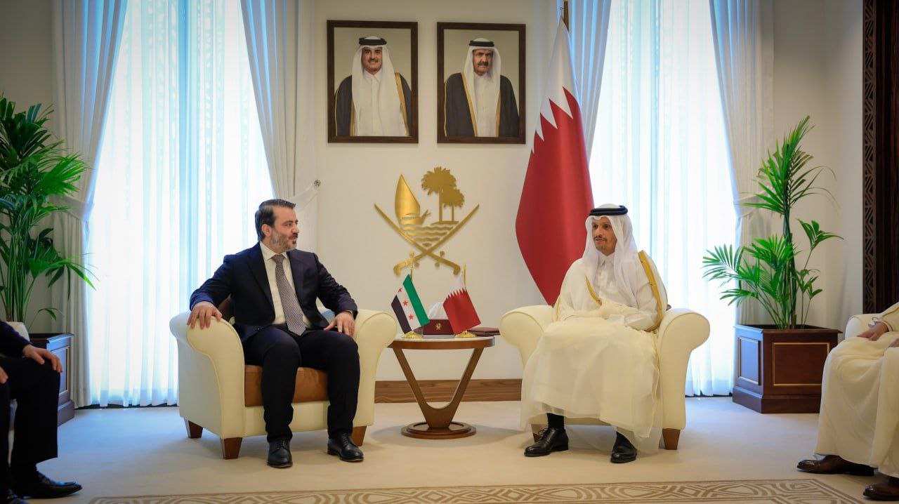 وزير الخارجية والمغتربين السيد أسعد الشيباني يلتقي والوفد الوزاري المرافق له رئيس مجلس الوزراء وزير الخارجية القطري الشيخ محمد بن عبد الرحمن آل ثاني في العاصمة القطرية الدوحة.