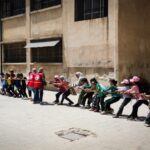 نظم متطوعو الهلال الأحمر العربي السوري فعاليات ترفيهية وحركية استفاد منها 60 طفلاً من قرية بسيرين بريف حماة الجنوبي.