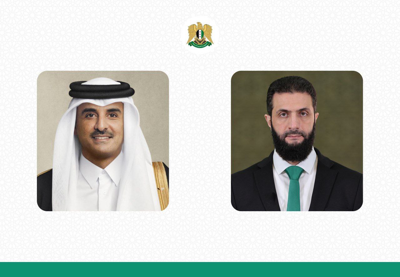 رئاسة الجمهورية: عبر اتصال هاتفي، رئيس الجمهورية العربية السورية، السيد أحمد الشرع، يهنئ الشيخ تميم بن حمد آل ثاني أمير دولة قطر، بمناسبة عيد الأضحى المبارك، متمنياً لقطر دوام الأمن والاستقرار والازدهار
