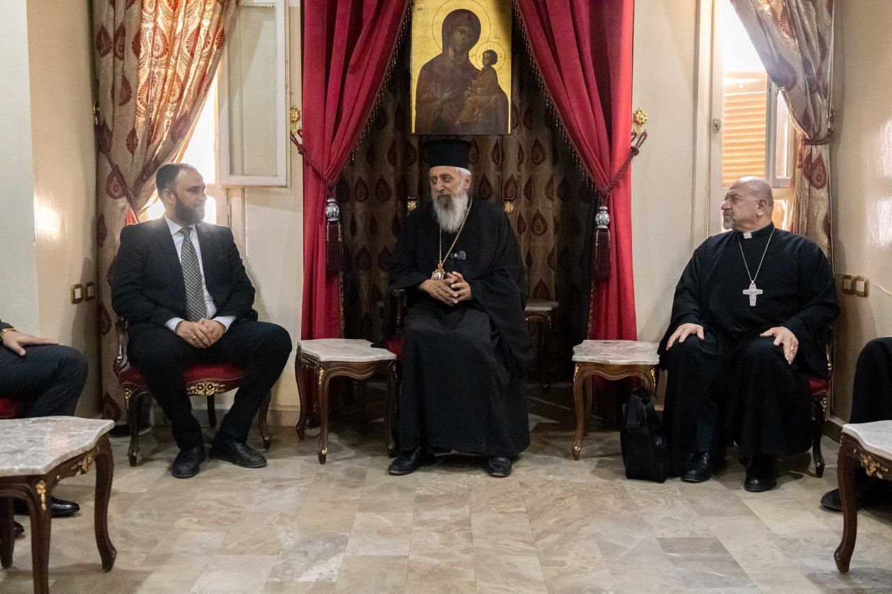 ترأس الوفد نائب مدير المديرية أيمن عبد الرحمن، وعدد من ممثلي المؤسسة، حيث كان في استقبالهم سيادة المطران نيقولاوس بعلبكي، متروبوليت حماة للروم الأرثوذكس، وقداسة الأب اسكندر بديع الترك، وكيل مطرانية السريان الكاثوليك في حماة.