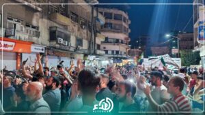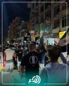 معكم من أجل سوريا موحدة ومزدهرة.. وقفة في ساحة العاصي بمدينة حماة، تأييداً لإجراءات الدولة السورية في بسط سيطرتها على محافظة السويداء، وإنهاء حالة الانفلات الأمني، وتعزيز أمن المدنيين واستقرارهم في تموز 14, 2025 شارك شارك FacebookWhatsAppFacebook MessengerTelegramTwitter