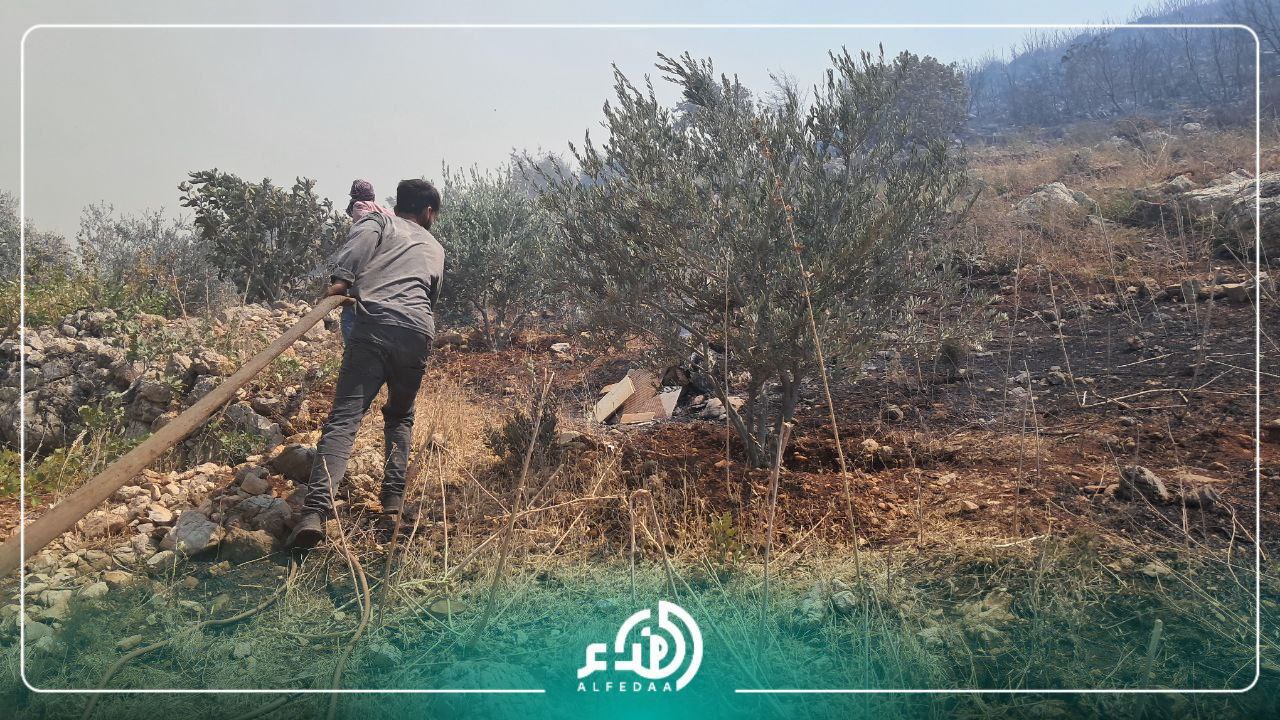 مراسل الفداء: بين مصدر من إدارة هيئة تطوير الغاب حول الحريق بأنه مؤخراً تمددت النيران لقرب منازل المدنيين في قرية ساقية نجم بسبب سرعة الرياح الشديدة