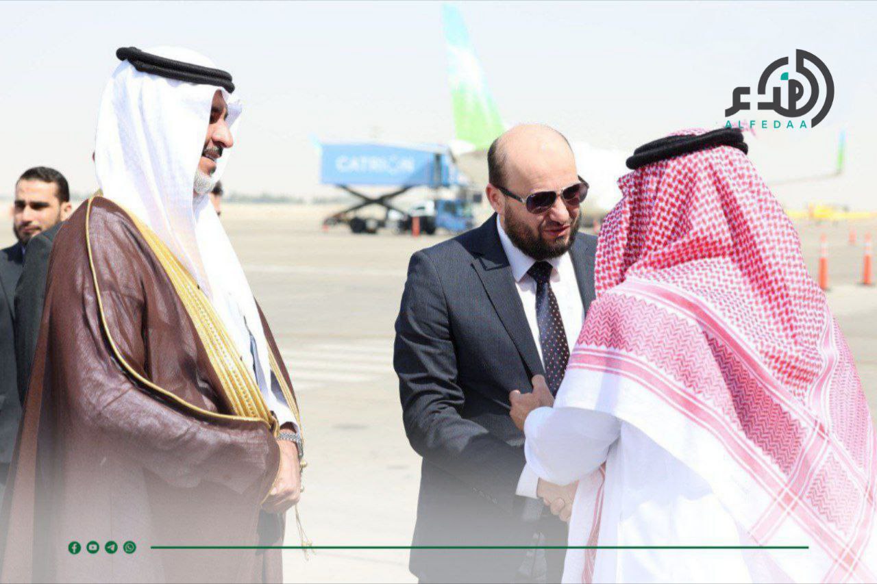 وزير الطاقة محمد البشير برفقة وكيل وزارة الطاقة السعودية للشؤون الفنية والتنظيمية للبترول والغاز ماجد العتيبي يصلان إلى الدمام بالمملكة العربية السعودية لتعزيز التعاون الثنائي بمجال الطاقة وتبادل الخبرات الفنية