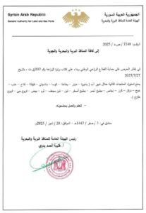 رئيس الهيئة العامة للمنافذ البرية والبحرية يصدر قراراً يقضي بمنع استيراد عدد من المنتجات الزراعية والفروج اعتباراً من مطلع شهر آب القادم، وذلك في إطار حرص الهيئة على دعم الإنتاج المحلي وحماية القطاع الزراعي الوطني.