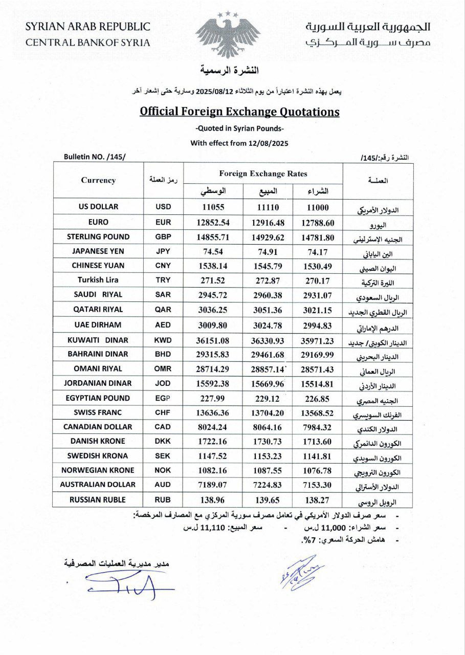 نشرة أسعار الصرف والمصارف وشركات الصرافة اليوم في آب 12, 2025 شارك شارك FacebookWhatsAppFacebook MessengerTelegramTwitter