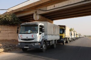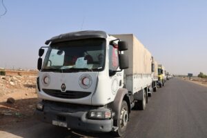 قافلة مساعدات إغاثية تتجه إلى السويداء في آب 14, 2025 شارك قافلة مساعدات إغاثية وغذائية للهلال الأحمر العربي السوري، مؤلفة من نحو 30 شاحنة، تصل إلى جسر نامر في ريف درعا، متوجهة إلى السويداء عبر ممر بصرى الشام الإنساني. شارك FacebookWhatsAppFacebook MessengerTelegramTwitter