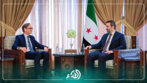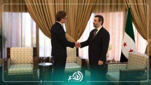 استقبل وزير الخارجية والمغتربين السيد أسعد حسن الشيباني، مدير شؤون الشرق الأوسط والشرق الأدنى، وشمال أفريقيا في وزارة الخارجية الألمانية السيد توبياس تونكل. وبحث الجانبان سبل تعزيز العلاقات الثنائية بين البلدين في مختلف المجالات، إضافة إلى عدد من القضايا الإقليمية ذات الاهتمام المشترك.