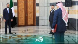 تقبّل السيد الرئيس أحمد الشرع، اليوم في قصر الشعب بدمشق، وبحضور وزير الخارجية والمغتربين السيد أسعد الشيباني، أوراق اعتماد سعادة السفير سفيان سلمان القضاة، سفير المملكة الأردنية الهاشمية لدى الجمهورية العربية السورية. في أيلول 6, 2025 شارك شارك FacebookWhatsAppFacebook MessengerTelegramTwitter