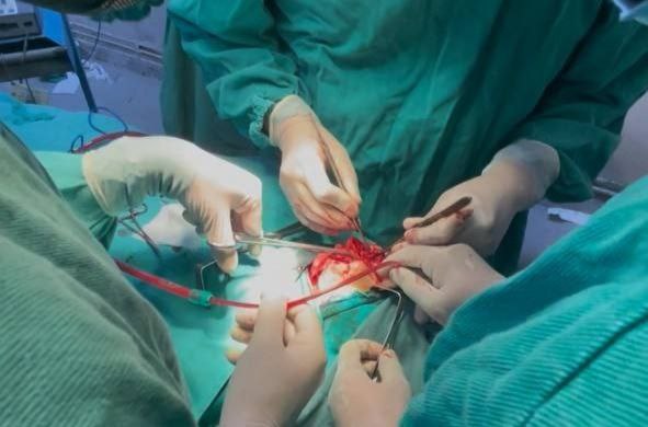 وأجرى العمل الجراحي الدكتور فادي الحارس، باستخدام مدخل weber – ferguson مع تسليخ العضلات المحيطة، للوصول الكامل إلى الورم واستئصاله بشكل كامل.