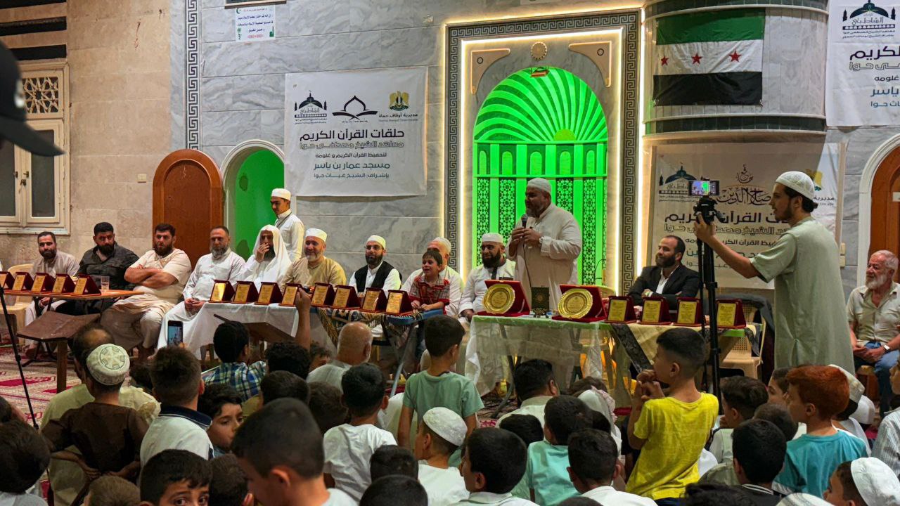 تقديراً لجهود الطلاب في حفظ كتاب الله، أقامت معاهد الإمام الشاطبي، ومعاهد الشيخ مصطفى حوّى، حفل اختتام الدورة الصيفية الأولى، وذلك في مسجد عمّار بن ياسر بمدينة حماة، برعاية مديرية الأوقاف.