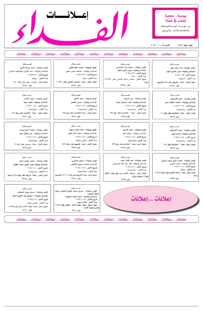 عنوان المحل : حماة – الخالدية عقار رقم 233