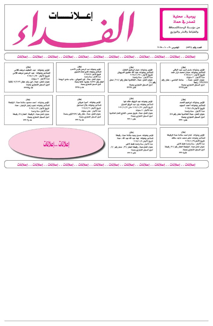 المستأجر وعنوانه: نهاد عبد الله عبد الله ـ حماة
