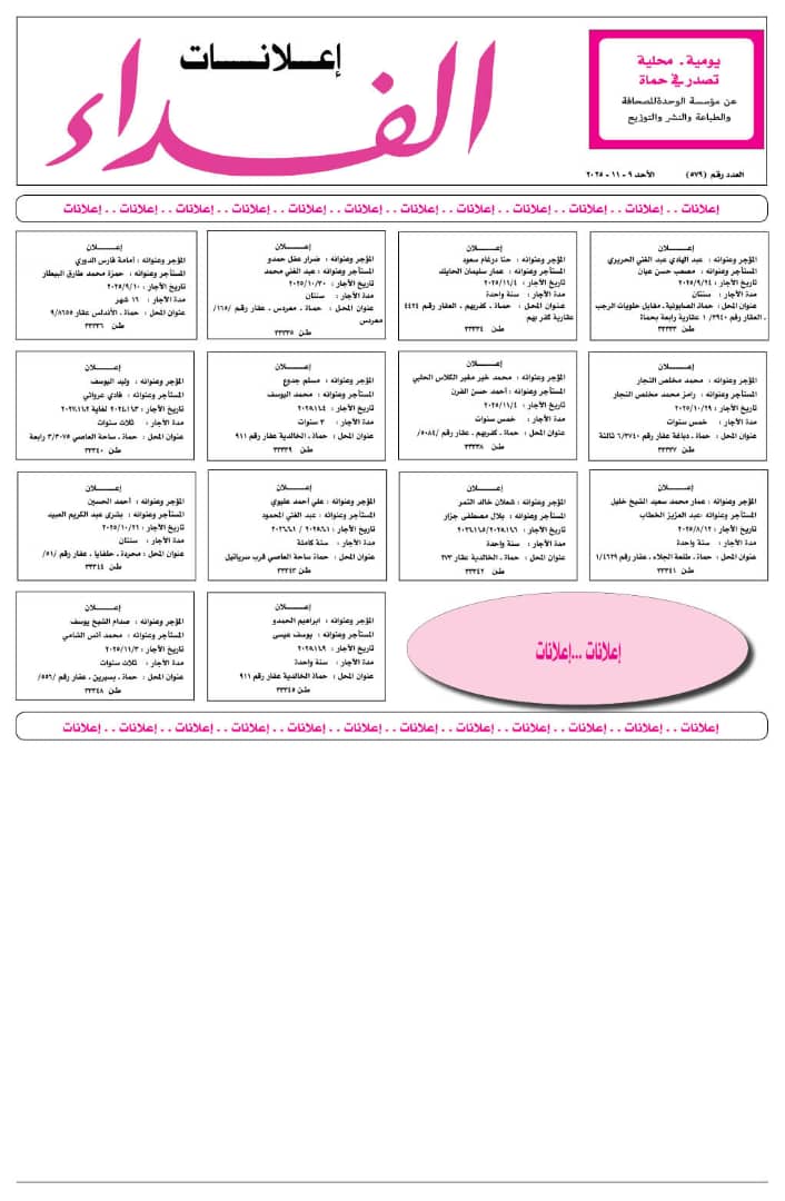 عنوان المحل : حماة ـ الأندلس عقار 8655/9