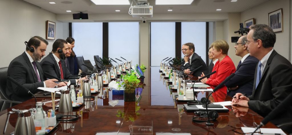 اجتمع رئيس الجمهورية العربية السورية “أحمد الشرع “،برفقة وزير الخارجية والمغتربين “أسعد حسن الشيباني”، بالمديرة العامة لصندوق النقد الدولي، “كريستالينا جورجييفا”، وذلك في مقر الصندوق بالعاصمة الأميركية واشنطن، أمس الأحد.