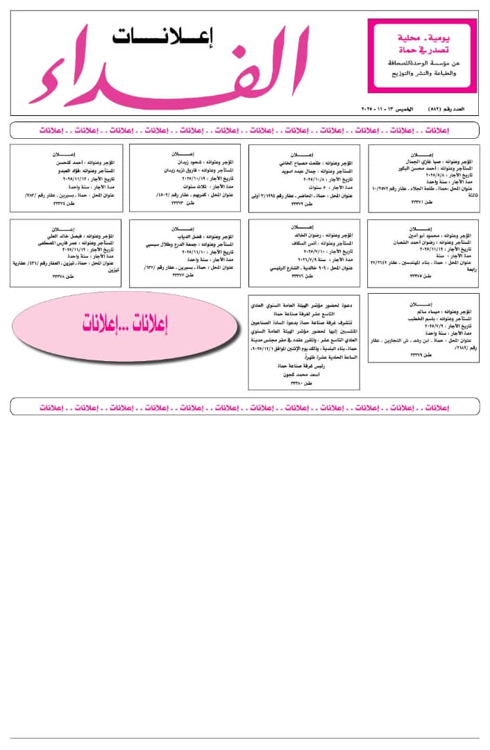 عنوان المحل :حماة ـ طلعة الجلاء ـ عقار رقم 2572/10 ثالثة