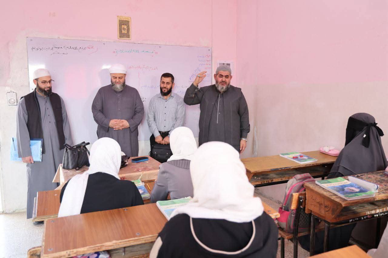 تابع مدير أوقاف محافظة حماة الأستاذ معاذ ريحان، سير العملية التعليمية في الثانويات الشرعية بمدينة صوران خلال زيارة ميدانية أجراها برفقة وفد من المديرية للاطلاع على المذاكرات المركزية وآلية تنفيذها داخل المدارس.
