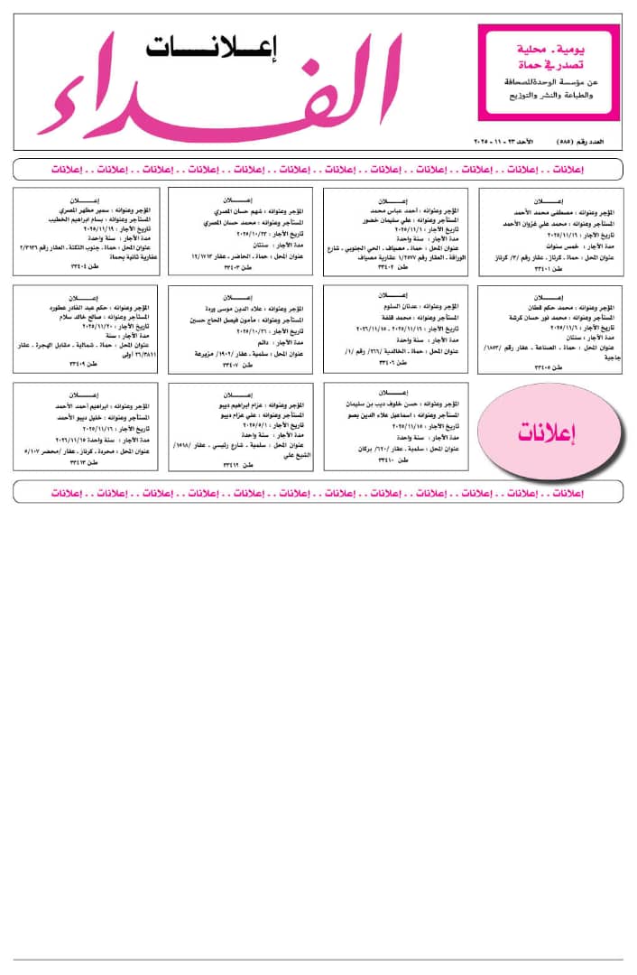 تاريخ الآجار : 16/11/2025 ـ 15/11/2026