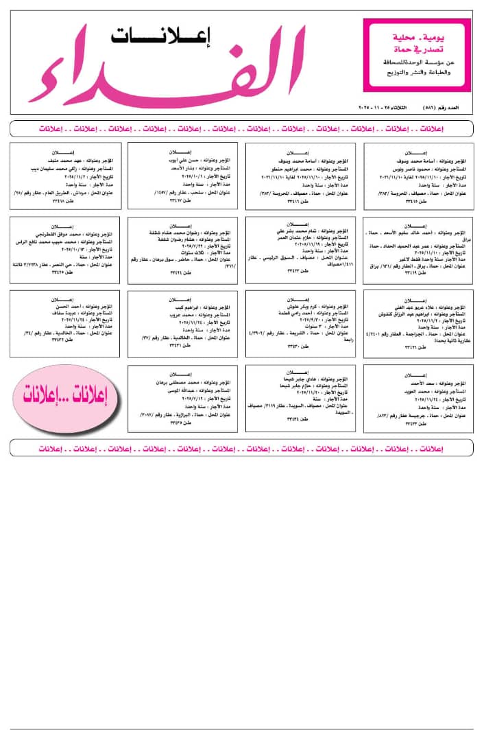 المؤجر وعنوانه : أحمد خالد سليم الأسعد ـ حماة ـ براق